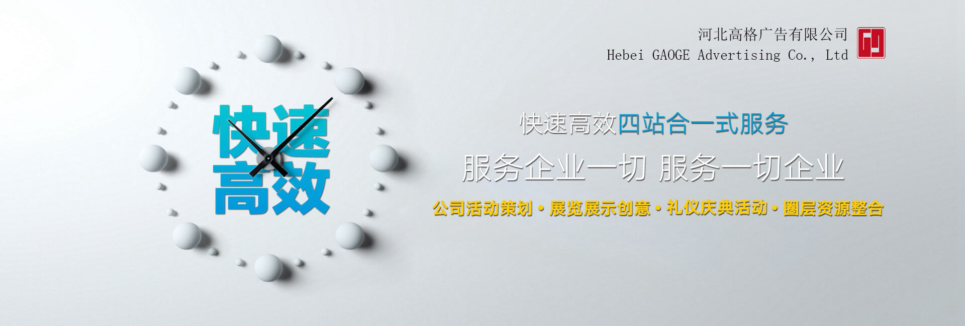 河北高格廣告有限公司是一家專業(yè)致力于大型文化活動組織策劃、展覽展示工程策劃、展臺設(shè)計制作、特裝展臺搭建、會議會場布置、巡回展覽、路演、公關(guān)推廣執(zhí)行、會議慶典禮儀、路演設(shè)備租賃、倉儲等一站式的專業(yè)服務(wù)公司。本公司憑借創(chuàng)新領(lǐng)先的服務(wù)理念,大型的廠房空間,現(xiàn)代化的機(jī)械設(shè)備,高素質(zhì)專業(yè)的服務(wù)團(tuán)隊(duì),及在該行業(yè)多年的實(shí)戰(zhàn)經(jīng)驗(yàn),為地產(chǎn)營銷提供了優(yōu)秀的活動方案、為不同行業(yè)的數(shù)千家企業(yè)提供了專業(yè)個性化的空間展示方案,幫助客戶實(shí)現(xiàn)了自我品牌的提升和企業(yè)利潤的雙贏。...